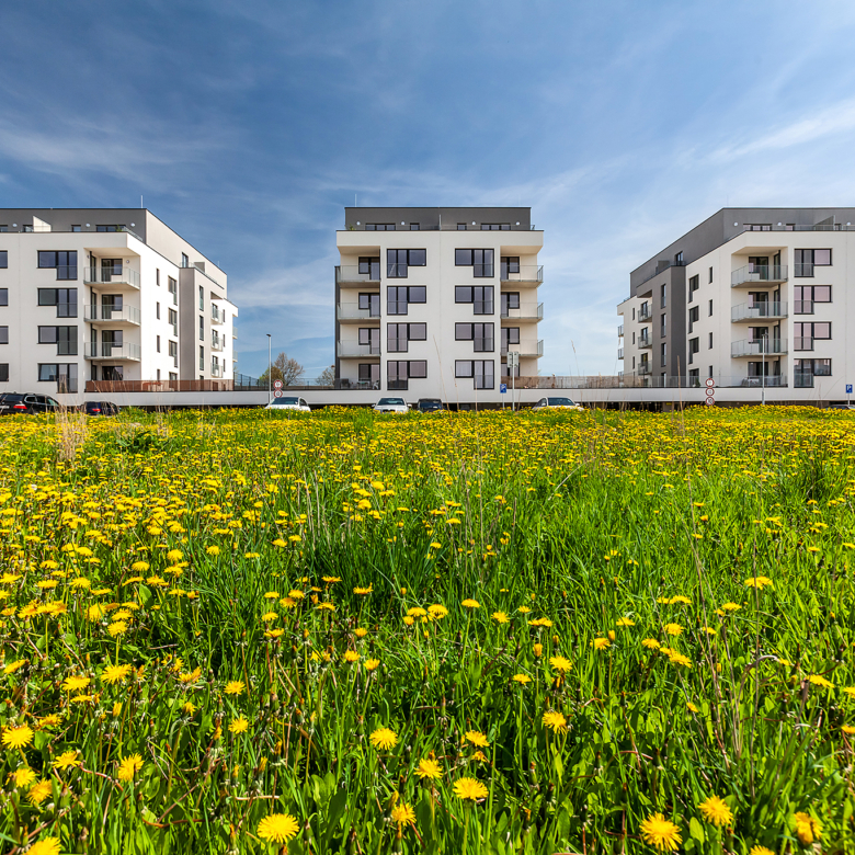 Technické a praktické zázemí: Vytápění je zajištěno dálkově horkovodně s možností individuální regulace a měření spotřeby v každé bytové jednotce.